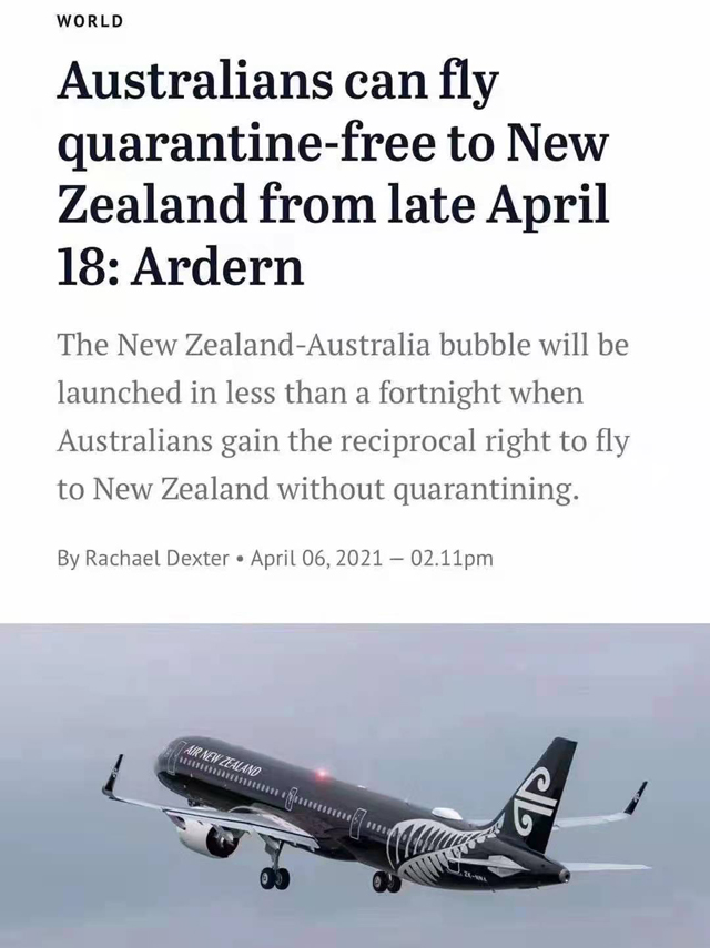 移投界讯:2021年4月6日,在封关锁国长达一年之后,澳洲的国门终于打开了一条缝,新西兰官宣和澳洲的 “旅行泡泡”,第一个双向旅行互通达成了!澳洲时间今天下午2点,新西兰总理Jacinda Arden正式宣布:4月18日晚23:59分起,澳洲旅客可自由入境新西兰,免隔离!