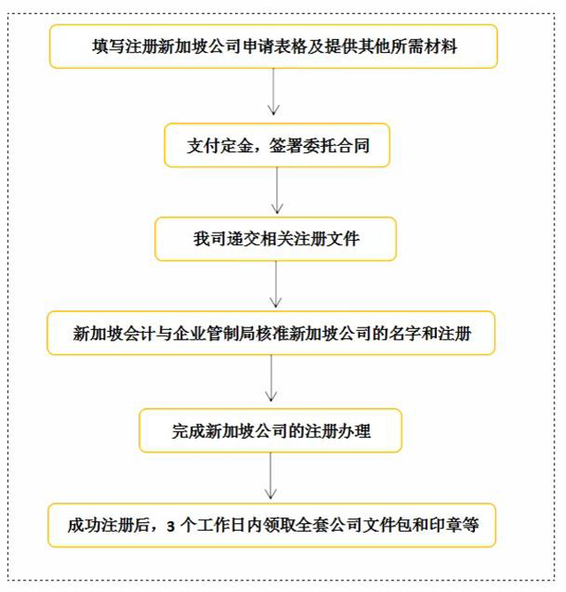 公司名称:新加坡公司名称一般没有严格限制,可以使用国家、集体、控股等,新加坡公司名称为全英文,以PTE.LTD. 结尾,意为私人有限公司。