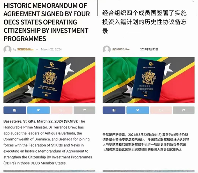 2024年3月24日,多米尼克本地媒体报道,安提瓜和巴布达,圣基茨和尼维斯,多米尼克,格林纳达四国总理在本周签署了一份广泛的谅解备忘录,承诺在2024年6月30日之前将投资门槛涨至20万美金起,对这一最低标准的任何修改都必须得到全体成员的一致通过。这条消息宣告,小国护照即将告别10万美金时代,接下来将迎来全面涨价时候,最低20万美金起,对投资者来说将增加一倍的捐款,未来是否还有吸引力,让我们拭目以待。